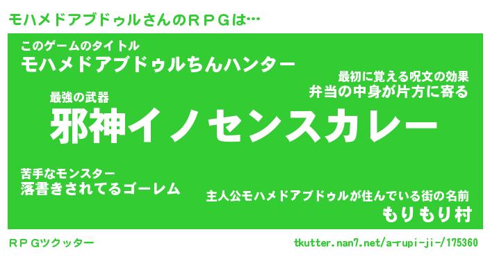 | 男性向けラノベタイトル風あだ名 | 『モハメドアブドゥルアートオンライン』 |