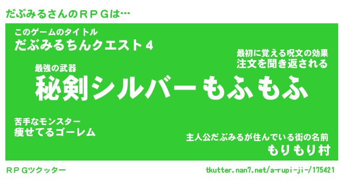 | ファンタジー風あだ名 | 『ダブフェル』『エターナルダブミルー』 |