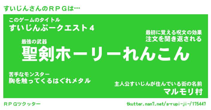 | 意味不明あだ名 | 『ペロリンすいじん』『永久保存すいじん』 |