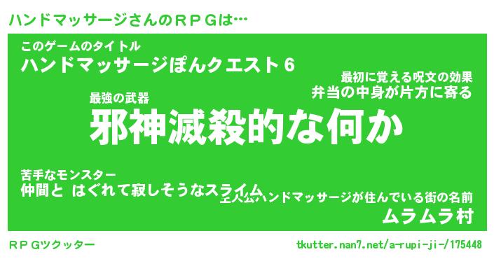 | 胡散臭い通販商品みたいなあだ名 | 『億万長者になれる霊験あらたかなお札…その名も「ハンドマッサージ」』 |