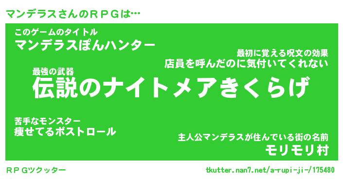 | 胡散臭い通販商品みたいなあだ名 | 『モテモテ間違いなし霊験あらたかなお札…その名も「マンデラス」』 |