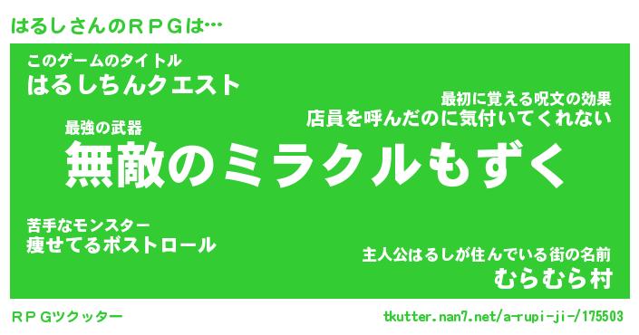 | 伝説のあだ名 | 『封印されし竜騎士はるし』 |
