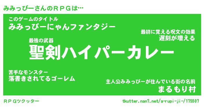 | 男性向けラノベタイトル風あだ名 | 『みみっぴーの憂鬱』 |