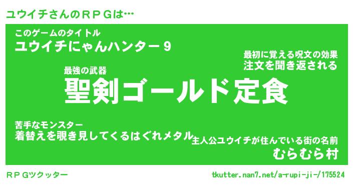 | ファンタジー風あだ名 | 『ユウフェル』『エターナルユウイチー』 |