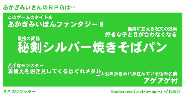 | ファンタジー風あだ名 | 『アカフェル』『エターナルアカギミイー』 |