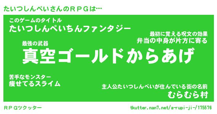 | 胡散臭い通販商品みたいなあだ名 | 『億万長者になれる水晶球…その名も「たいつしんぺい」』 |