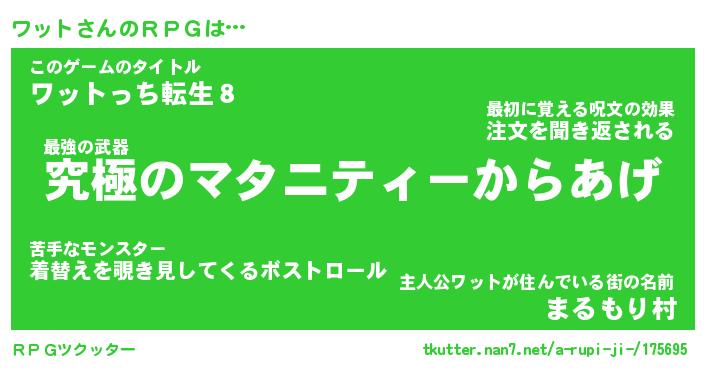 | 男性向けラノベタイトル風あだ名 | 『ワットアートオンライン』 |