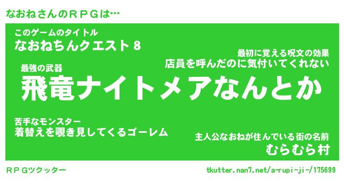 | 男性向けラノベタイトル風あだ名 | 『ナオネアートオンライン』 |