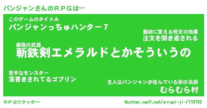| 男性向けラノベタイトル風あだ名 | 『パンジャンの憂鬱』 |