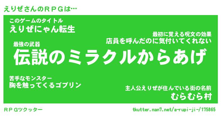 | 男性向けラノベタイトル風あだ名 | 『えりぜの憂鬱』 |