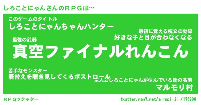 | 男性向けラノベタイトル風あだ名 | 『シロコトニャンアートオンライン』 |