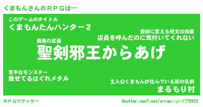 | ファンタジー風あだ名 | 『クマフェル』『エターナルクマモンー』 |