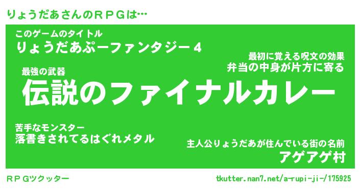 | ファンタジー風あだ名 | 『リョフェル』『エターナルリョウダアー』 |