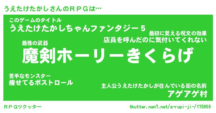 | 伝説のあだ名 | 『伝説の傭兵うえたけたかし』 |