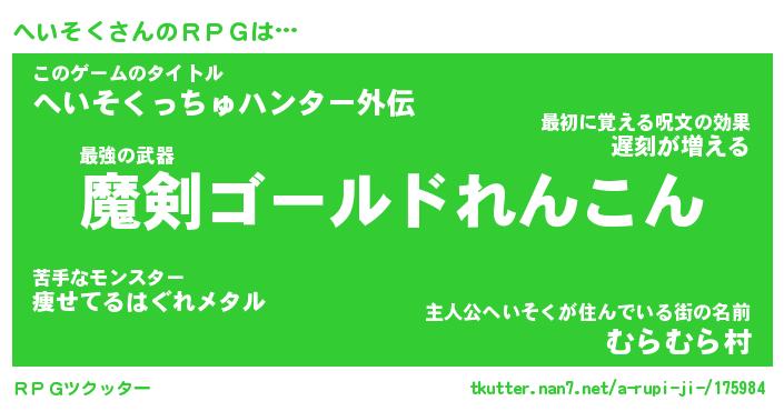 | 胡散臭い通販商品みたいなあだ名 | 『必ず成功する霊験あらたかなお札…その名も「へいそく」』 |