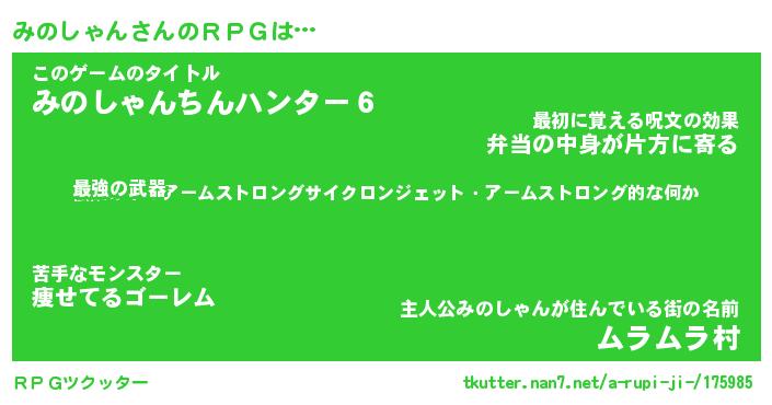 | 男性向けラノベタイトル風あだ名 | 『みのしゃんの憂鬱』 |