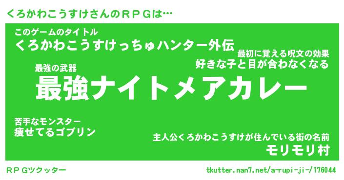 | 女子向けラノベタイトル風あだ名 | 『くろかわこうすけ姫と円卓の騎士』 |