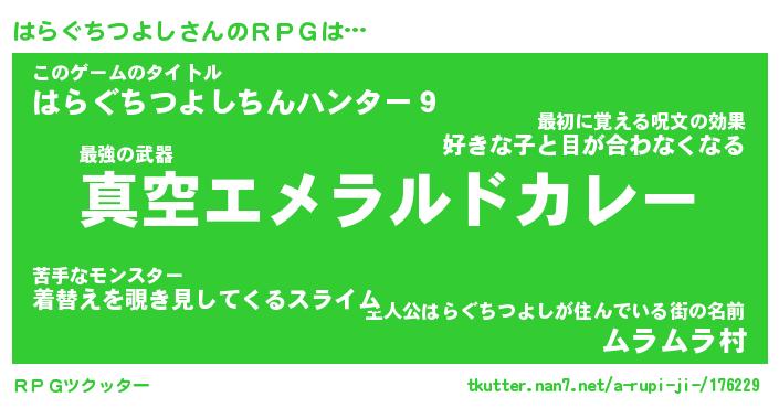 | 男性向けラノベタイトル風あだ名 | 『ハラグチツヨシアートオンライン』 |
