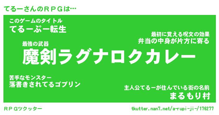 | 男性向けラノベタイトル風あだ名 | 『てるーの憂鬱』 |