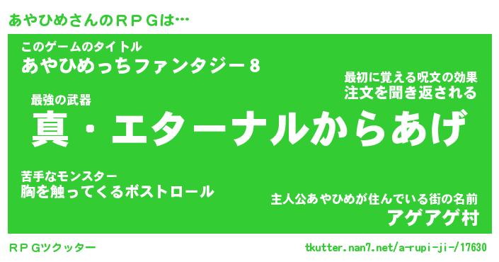 | 男性向けラノベタイトル風あだ名 | 『アヤヒメアートオンライン』 |