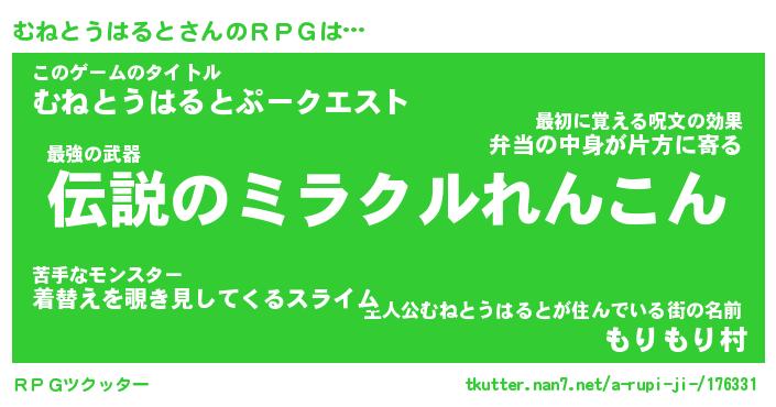 | 伝説のあだ名 | 『不死鳥の竜騎士むねとうはると』 |