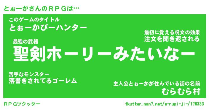 | ファンタジー風あだ名 | 『トォフェル』『エターナルトォーカー』 |