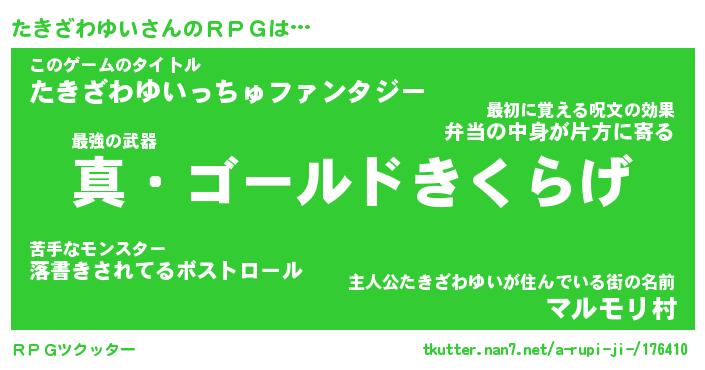 | 胡散臭い通販商品みたいなあだ名 | 『億万長者になれる霊験あらたかなお札…その名も「たきざわゆい」』 |