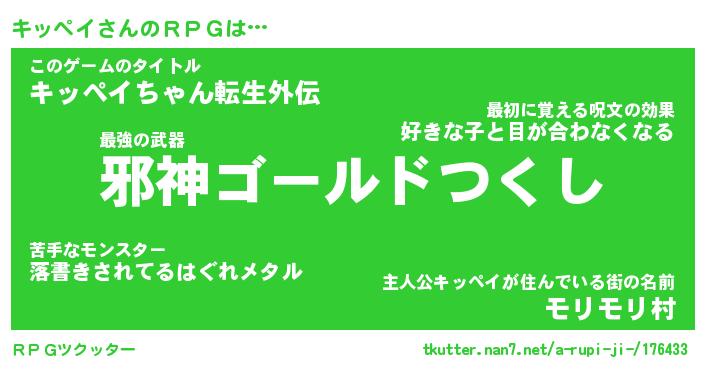 | ファンタジー風あだ名 | 『キッフェル』『エターナルキッペイー』 |