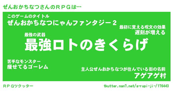 | 男性向けラノベタイトル風あだ名 | 『ゼンオカチナツアートオンライン』 |