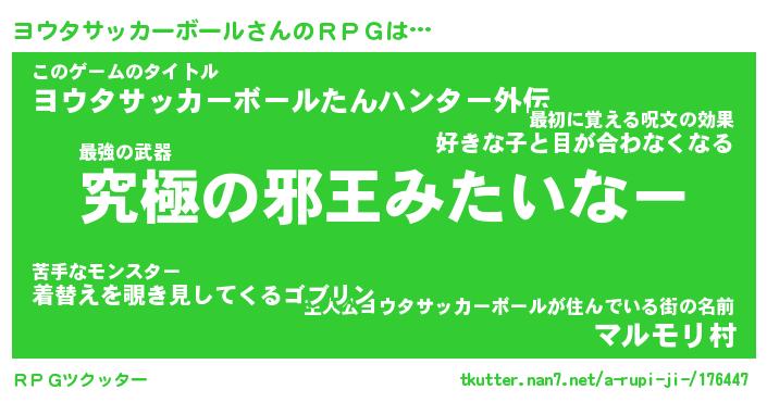 | 男性向けラノベタイトル風あだ名 | 『ヨウタサッカーボールアートオンライン』 |