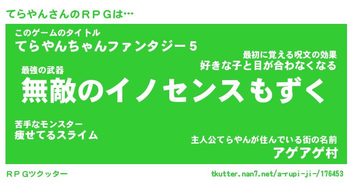 | ファンタジー風あだ名 | 『テラフェル』『エターナルテラヤンー』 |