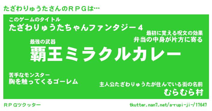 | 男性向けラノベタイトル風あだ名 | 『タザワリュウタアートオンライン』 |