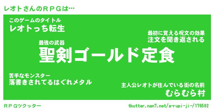 | 胡散臭い通販商品みたいなあだ名 | 『必ず成功する霊験あらたかなお札…その名も「レオト」』 |