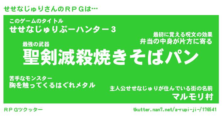 | 胡散臭い通販商品みたいなあだ名 | 『必ず成功する霊験あらたかなお札…その名も「せせなじゅり」』 |
