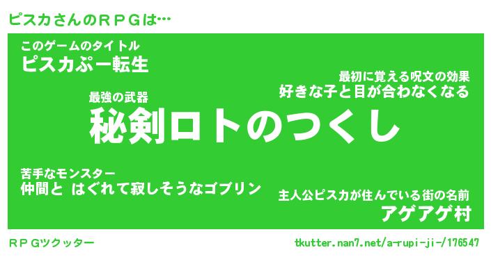 | 男性向けラノベタイトル風あだ名 | 『ピスカの憂鬱』 |
