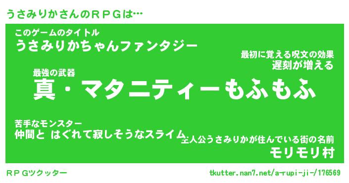 | 胡散臭い通販商品みたいなあだ名 | 『億万長者になれる霊験あらたかなお札…その名も「うさみりか」』 |