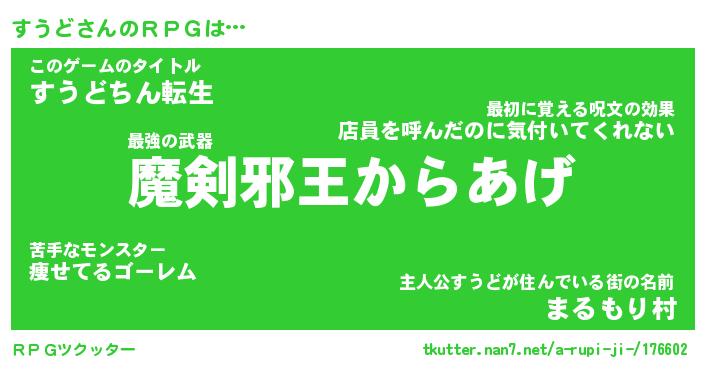 | 男性向けラノベタイトル風あだ名 | 『すうどの憂鬱』 |