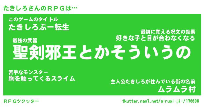 | ヒーロー風カッコイイあだ名 | 『スーパータキシロ』『幻影騎士タキ』 |