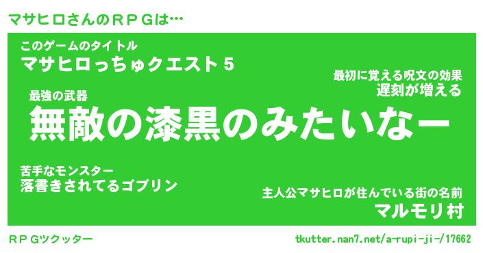 | 伝説のあだ名 | 『封印されしスナイパーマサヒロ』 |