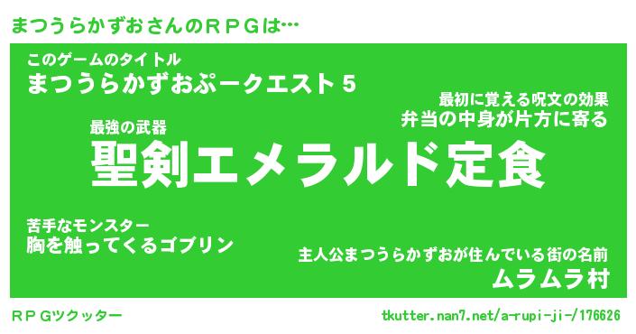 | 胡散臭い通販商品みたいなあだ名 | 『必ず成功する霊験あらたかなお札…その名も「まつうらかずお」』 |