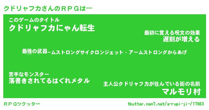 | 男性向けラノベタイトル風あだ名 | 『クドリャフカアートオンライン』 |