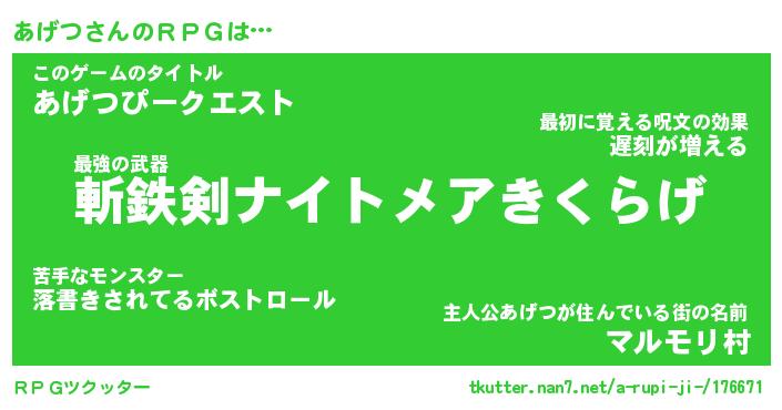 | ファンタジー風あだ名 | 『アゲフェル』『エターナルアゲツー』 |