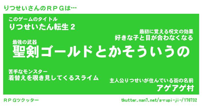 | ファンタジー風あだ名 | 『リツフェル』『エターナルリツセイー』 |