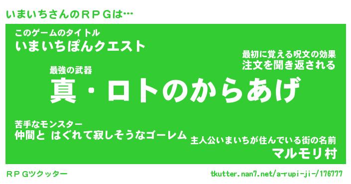 | ファンタジー風あだ名 | 『イマフェル』『エターナルイマイチー』 |
