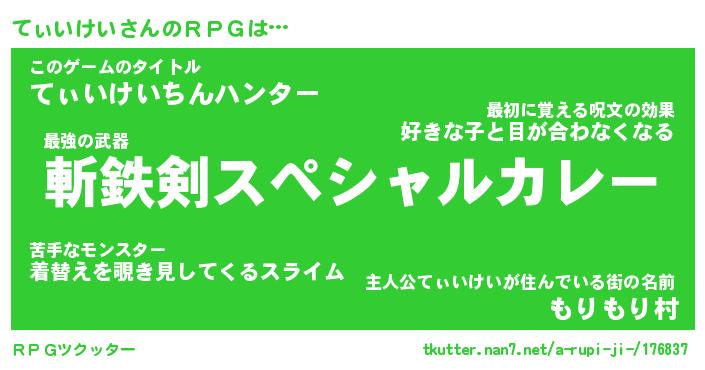 | 伝説のあだ名 | 『伝説の竜騎士てぃいけい』 |