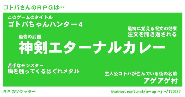 | 男性向けラノベタイトル風あだ名 | 『ゴトバの憂鬱』 |