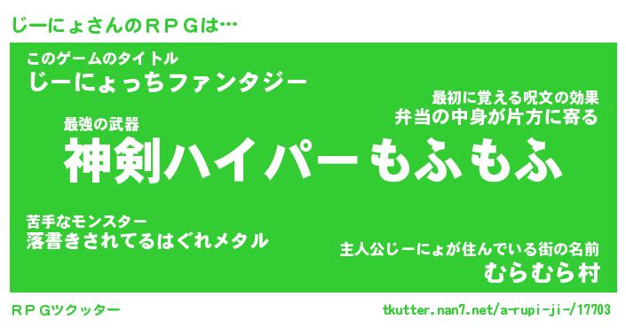 | 意味不明あだ名 | 『ペロリンじーにょ』『永久保存じーにょ』 |