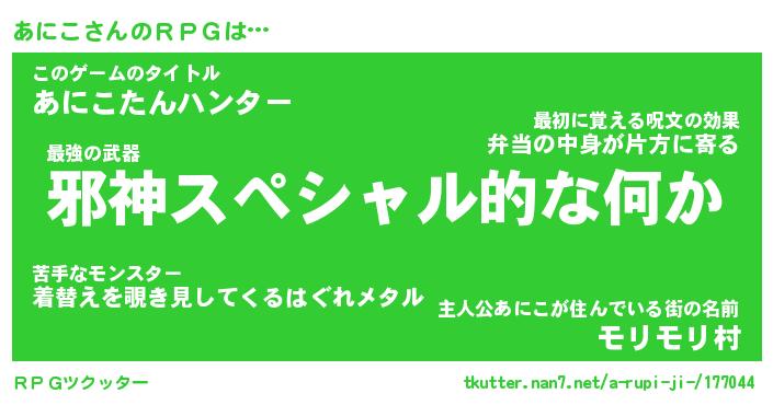 | 伝説のあだ名 | 『封印されし竜騎士あにこ』 |
