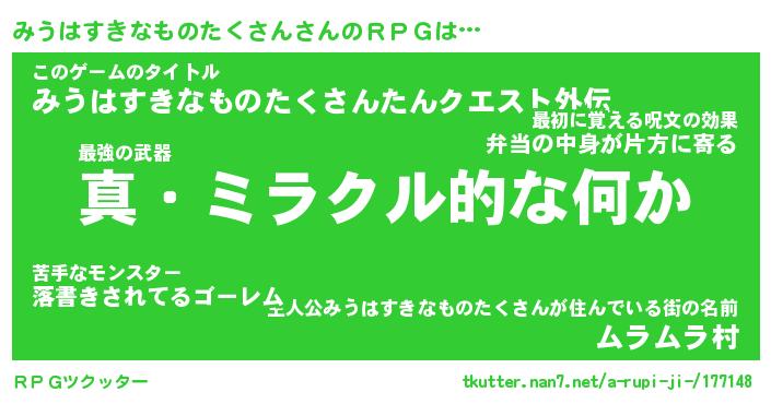 | 伝説のあだ名 | 『封印されし竜騎士みうはすきなものたくさん』 |