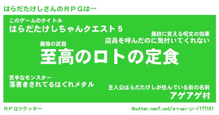 | 伝説のあだ名 | 『不死鳥の竜騎士はらだたけし』 |